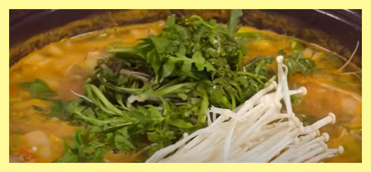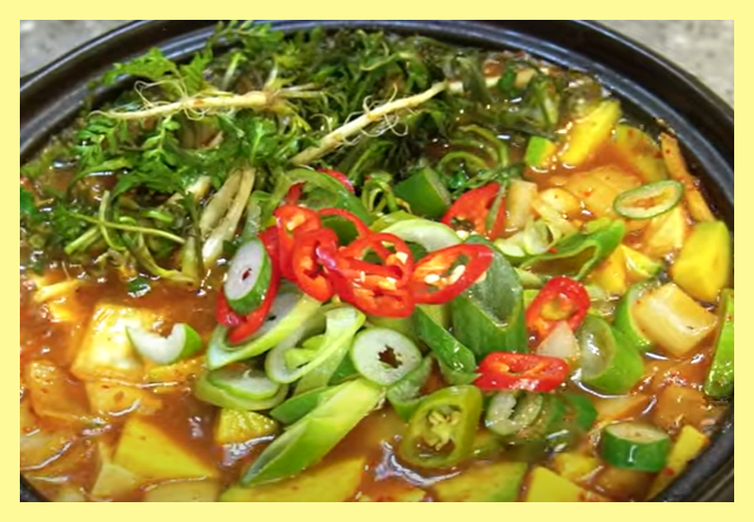 - 손질한 냉이를 넣고, 뚜껑을 열고 2~3분 더 끓입니다.