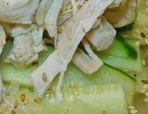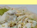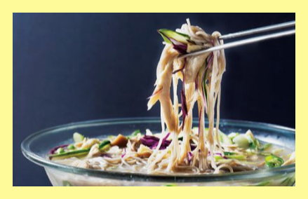 새콤한 식초와 겨자 소스를 곁들여 먹는 냉국수 요리로,